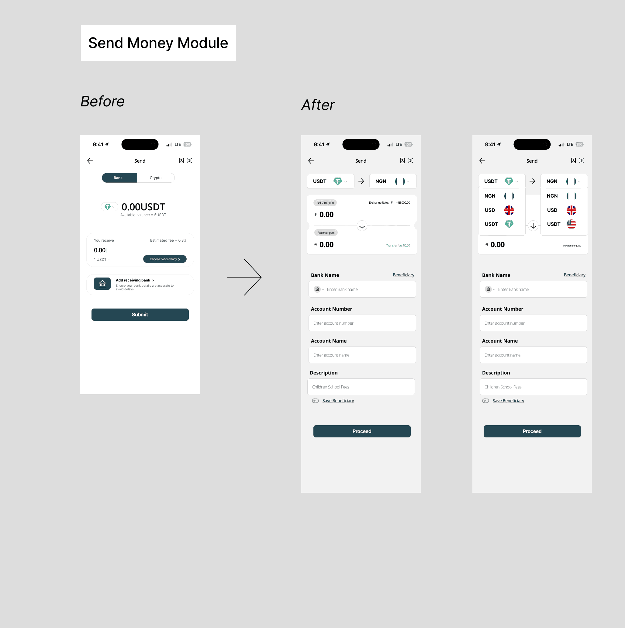 Complex Send Money flow caused confusion: Multiple screens and scattered input fields led to longer completion times and errors.